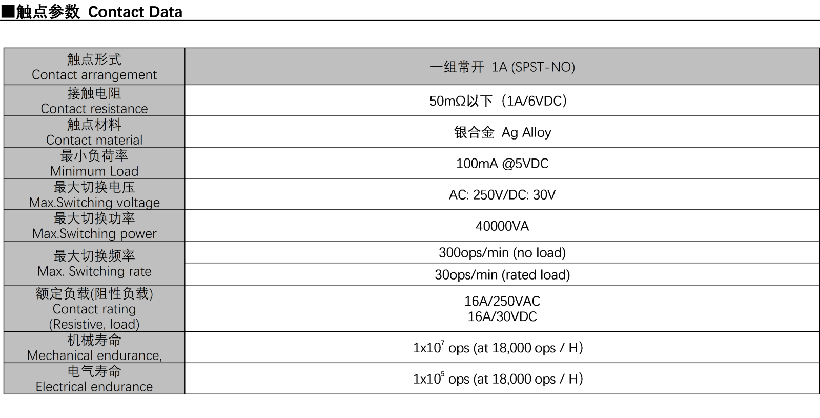 觸點結構 Contact of Arrangement
