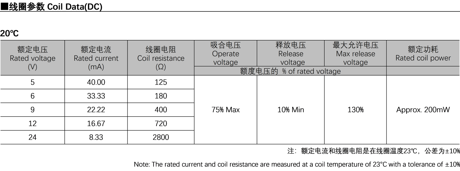 Low power consumption, with a coil power consumption of 200mW.